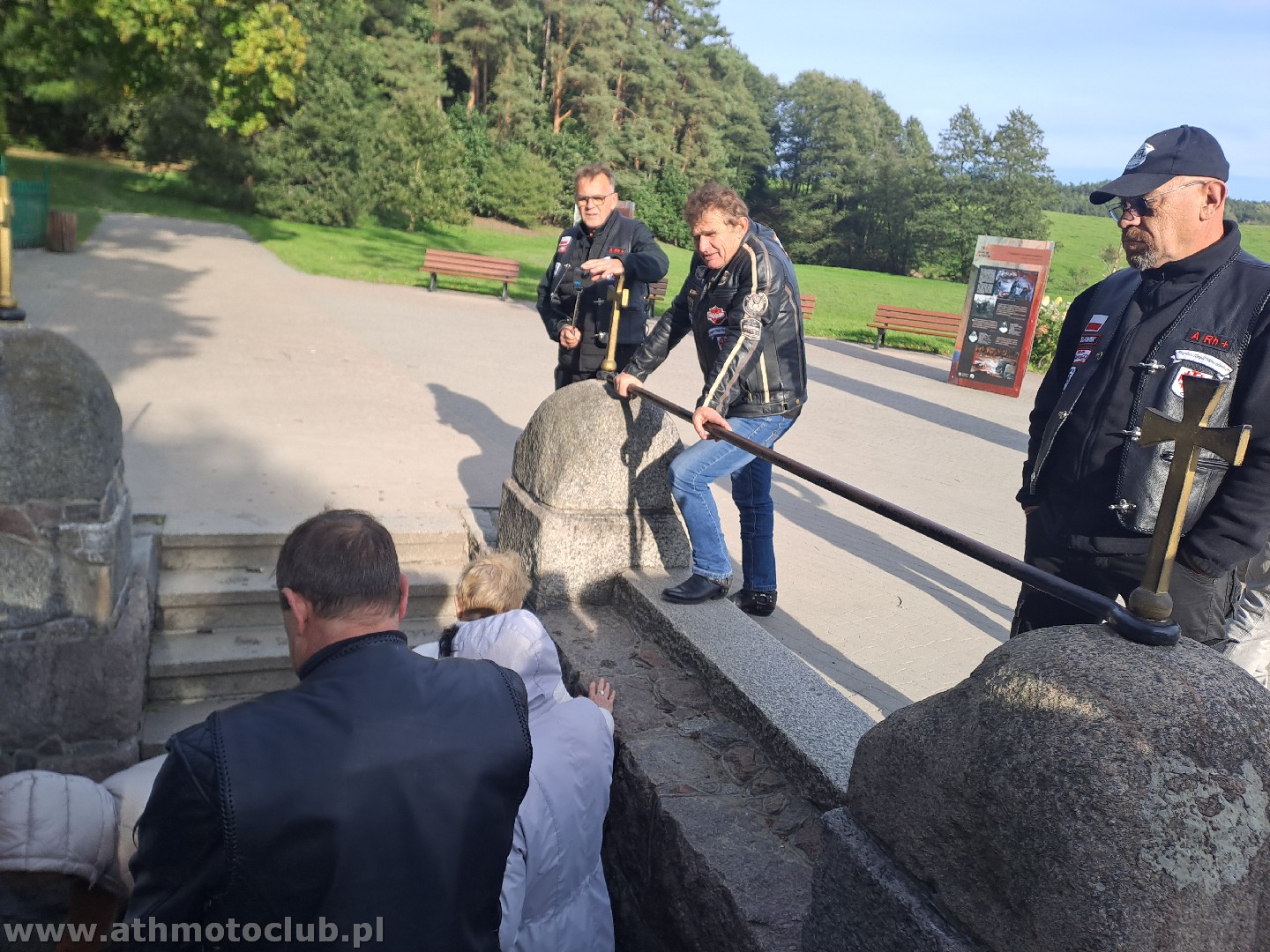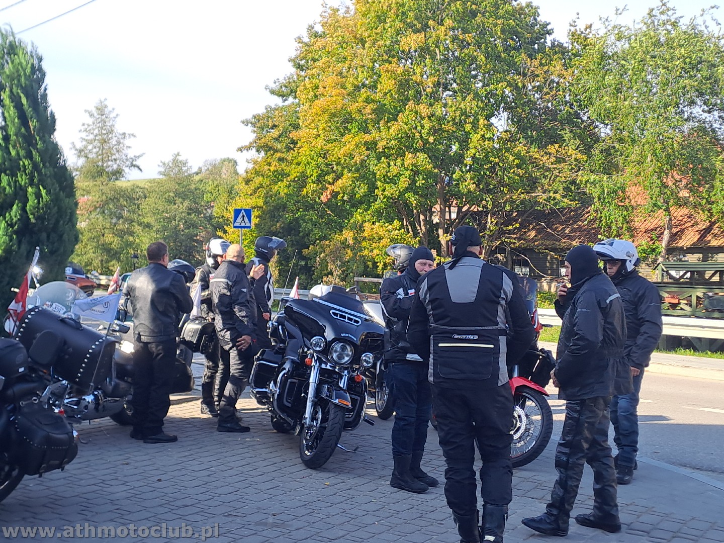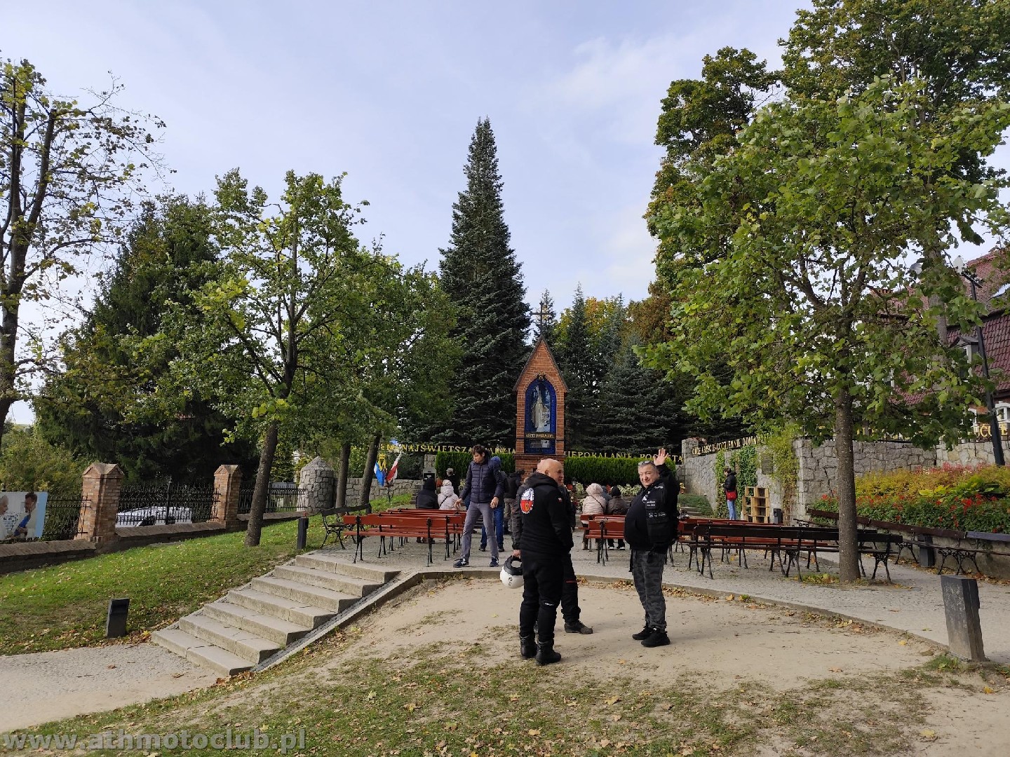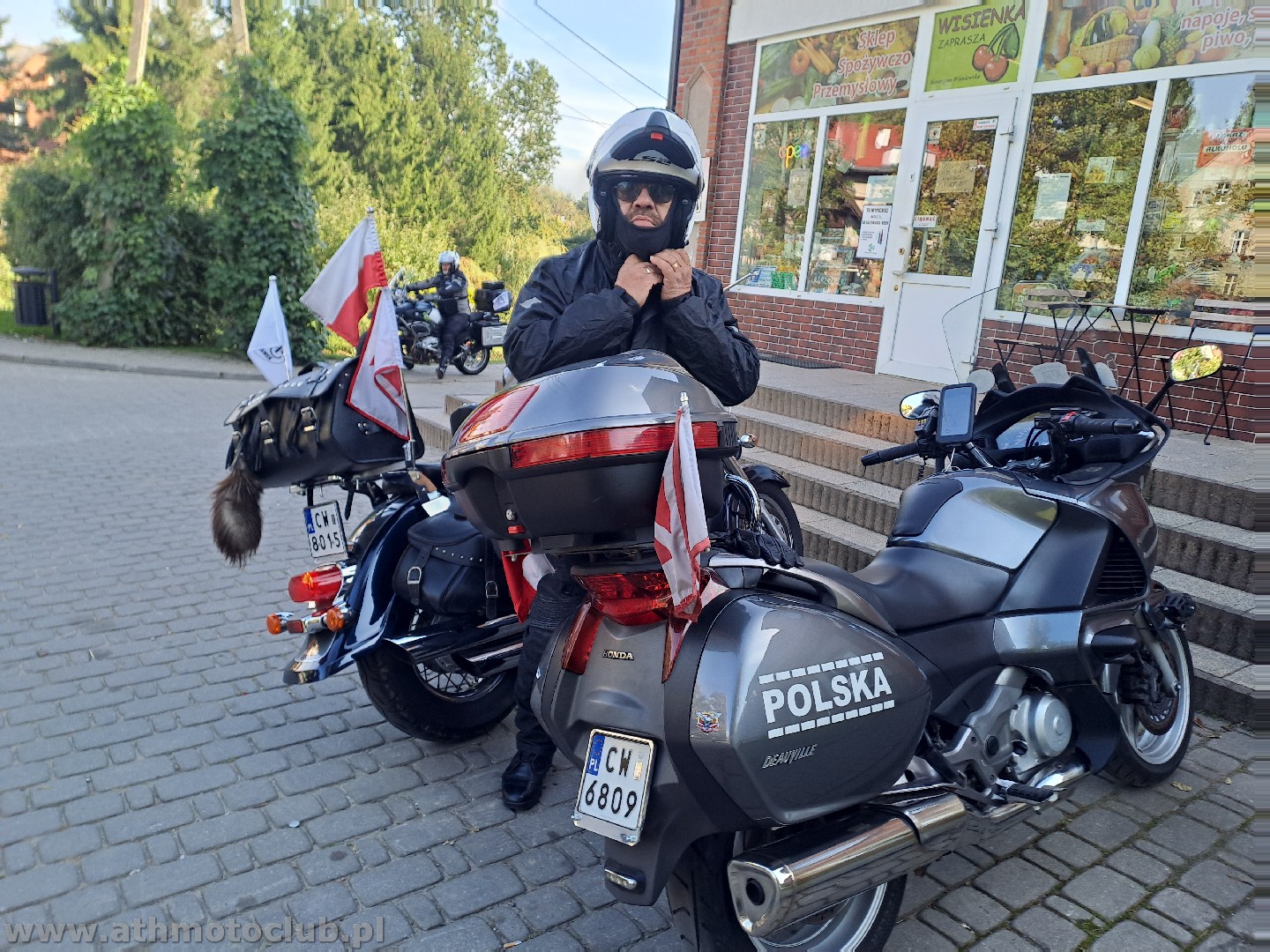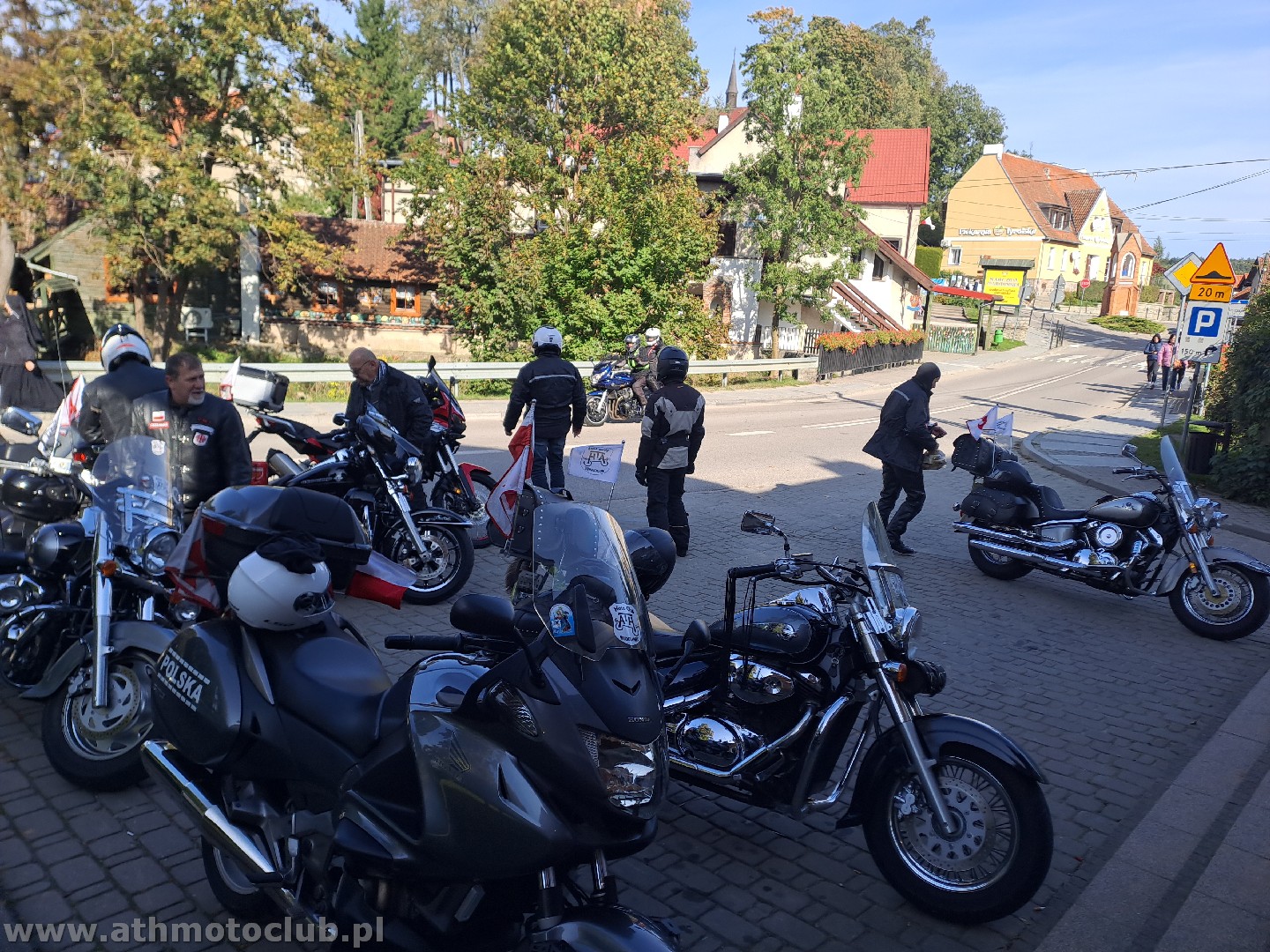 Pierwszy weekend października od wielu już lat kojarzy się motocyklistom z zakończeniem sezonu organizowanym przez Stowarzyszenie Międzynarodowy Motocyklowy RAJD KATYŃSKI. Mimo nie do końca sprzyjającej pogody w sobotę – 4 października ATH MOTOCLUB Włocławek stawił się w Gietrzwałdzie niemal w komplecie. Nasz wyjazd rozpoczęliśmy tradycyjnie przy naszej Siedzibie, skąd ruszyliśmy w drogę urokliwymi okolicami Kujaw, Pojezierza Brodnickiego by dotrzeć na Warmię. Ważnym punktem naszej corocznej wyprawy jest wspólny obiad w niemal domowej atmosferze, który ma miejsce w Gospodzie Mariasz – miejscu w iście warmińskim stylu z wyśmienitą polską kuchnią, gdzie z uśmiechem (jak zawsze) przywitała nas Pani Asia. Celem naszej wyprawy w tym dniu były „Noclegi przy Cukierni”, gdzie dotarliśmy w wyśmienitych humorach. Po bezpiecznym zaparkowaniu naszych stalowych rumaków oraz rozpakowaniu bagaży udaliśmy się na spacer po Sanktuarium Matki Bożej Gietrzwałdzkiej odwiedzając Bazylikę Narodzenia NMP oraz Źródełko – cudowne miejsce słynące wieloma łaskami, które w 1877 roku zostało pobłogosławione przez Matkę Bożą. Kolejnym punktem naszego pobytu w Gietrzwałdzie było ważne wydarzenie Klubowe – nasz Brat Sławomir Skierkiewicz otrzymał pierwszy atrybut potwierdzający jego przynależność do ATH MOTOCLUB Włocławek – flagę do umieszczenia na motocyklu. Ceremonii wręczenia przewodniczył Kapitan Sławomir Kurczaba, który odpowiadał za koordynację całej naszej wyprawy do Gietrzwałdu. Zwieńczeniem tego dnia była wspólna kolacja, której przygotowanie nadzorował Dariusz Ziółkowski – nasz niezawodny Brat o wielu talentach. Niedzielny poranek przywitał nas ciepłymi pączkami ofiarowanymi nam przez Właściciela miejsca, w którym nocowaliśmy. Głównym punktem niedzielnego przedpołudnia była jednak msza święta sprawowana na ołtarzu polowym znajdującym się przy wspomnianym wcześniej źródełku. Tradycją naszych wyjazdów stają się także „przygody dodatkowe” w drodze powrotnej… Tym razem psikusa sprawił nam jeden z motocykli, ale „konsylium ATH” pod przewodnictwem niezwodnego Brata Dariusza szybko usunęło awarię i mogliśmy ruszyć w dalszą drogę do domu. Nieco smutno, że kolejny sezon przechodzi do historii… Z drugiej strony cieszy nas to, że ostatni rok był pełen wspólnych udanych wyjazdów spędzonych w wyjątkowej, rodzinnej atmosferze. Kolejne dłuższe czasy z pewnością już na wiosnę, ale w tym roku jeszcze nie powiedzieliśmy ostatniego słowa... Poniżej kila fotek z nszego wyjazdu.