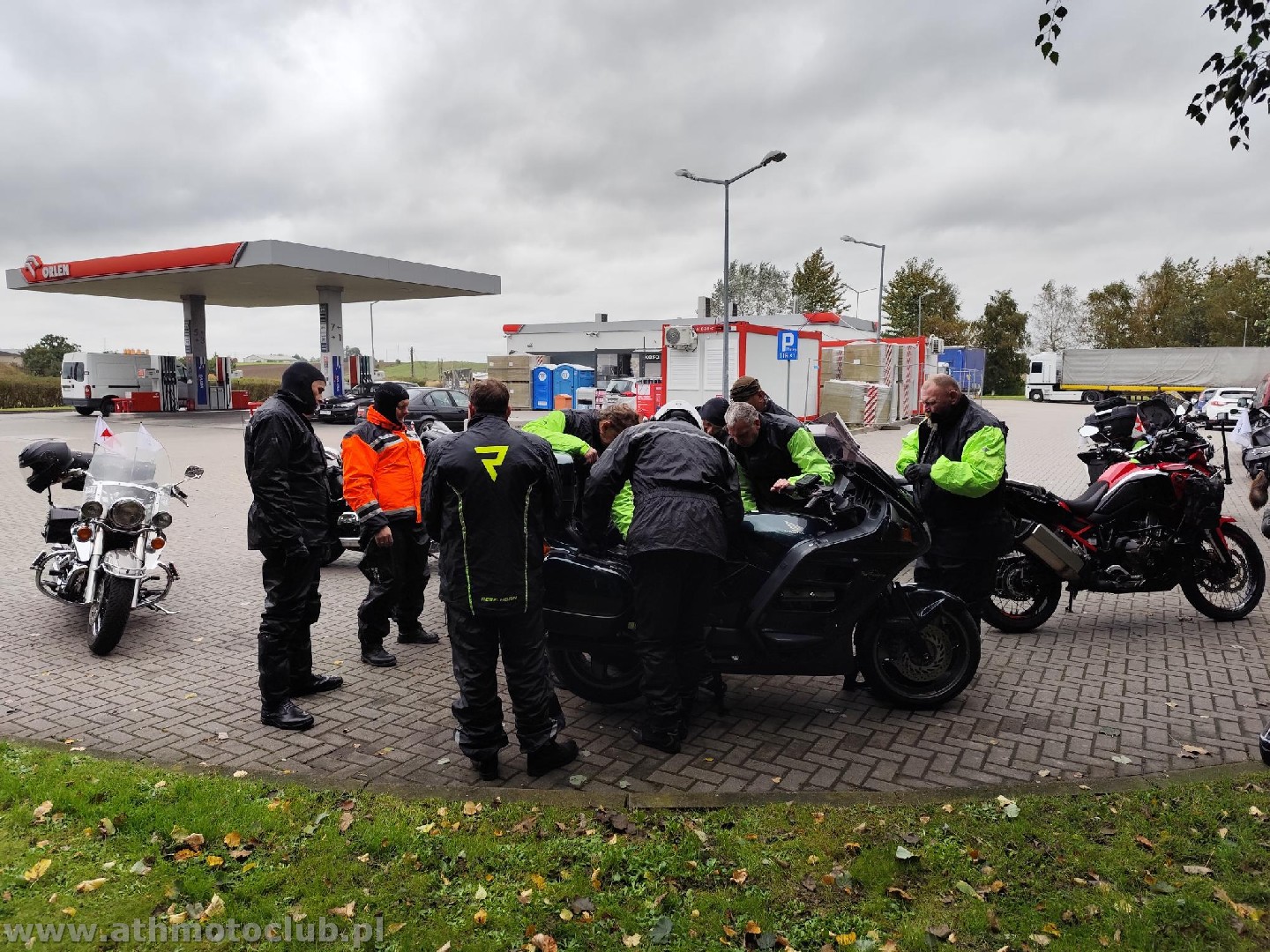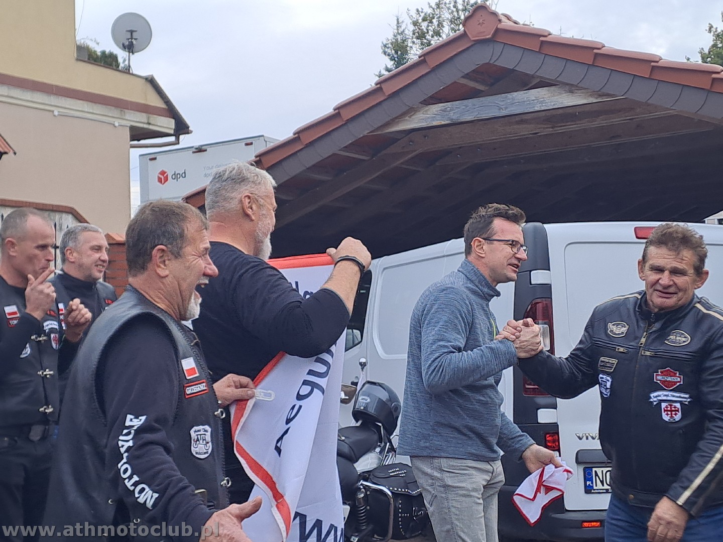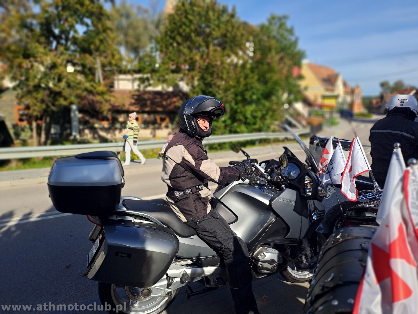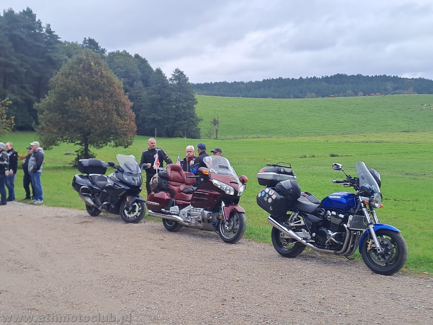 Pierwszy weekend października od wielu już lat kojarzy się motocyklistom z zakończeniem sezonu organizowanym przez Stowarzyszenie Międzynarodowy Motocyklowy RAJD KATYŃSKI. Mimo nie do końca sprzyjającej pogody w sobotę – 4 października ATH MOTOCLUB Włocławek stawił się w Gietrzwałdzie niemal w komplecie. Nasz wyjazd rozpoczęliśmy tradycyjnie przy naszej Siedzibie, skąd ruszyliśmy w drogę urokliwymi okolicami Kujaw, Pojezierza Brodnickiego by dotrzeć na Warmię. Ważnym punktem naszej corocznej wyprawy jest wspólny obiad w niemal domowej atmosferze, który ma miejsce w Gospodzie Mariasz – miejscu w iście warmińskim stylu z wyśmienitą polską kuchnią, gdzie z uśmiechem (jak zawsze) przywitała nas Pani Asia. Celem naszej wyprawy w tym dniu były „Noclegi przy Cukierni”, gdzie dotarliśmy w wyśmienitych humorach. Po bezpiecznym zaparkowaniu naszych stalowych rumaków oraz rozpakowaniu bagaży udaliśmy się na spacer po Sanktuarium Matki Bożej Gietrzwałdzkiej odwiedzając Bazylikę Narodzenia NMP oraz Źródełko – cudowne miejsce słynące wieloma łaskami, które w 1877 roku zostało pobłogosławione przez Matkę Bożą. Kolejnym punktem naszego pobytu w Gietrzwałdzie było ważne wydarzenie Klubowe – nasz Brat Sławomir Skierkiewicz otrzymał pierwszy atrybut potwierdzający jego przynależność do ATH MOTOCLUB Włocławek – flagę do umieszczenia na motocyklu. Ceremonii wręczenia przewodniczył Kapitan Sławomir Kurczaba, który odpowiadał za koordynację całej naszej wyprawy do Gietrzwałdu. Zwieńczeniem tego dnia była wspólna kolacja, której przygotowanie nadzorował Dariusz Ziółkowski – nasz niezawodny Brat o wielu talentach. Niedzielny poranek przywitał nas ciepłymi pączkami ofiarowanymi nam przez Właściciela miejsca, w którym nocowaliśmy. Głównym punktem niedzielnego przedpołudnia była jednak msza święta sprawowana na ołtarzu polowym znajdującym się przy wspomnianym wcześniej źródełku. Tradycją naszych wyjazdów stają się także „przygody dodatkowe” w drodze powrotnej… Tym razem psikusa sprawił nam jeden z motocykli, ale „konsylium ATH” pod przewodnictwem niezwodnego Brata Dariusza szybko usunęło awarię i mogliśmy ruszyć w dalszą drogę do domu. Nieco smutno, że kolejny sezon przechodzi do historii… Z drugiej strony cieszy nas to, że ostatni rok był pełen wspólnych udanych wyjazdów spędzonych w wyjątkowej, rodzinnej atmosferze. Kolejne dłuższe czasy z pewnością już na wiosnę, ale w tym roku jeszcze nie powiedzieliśmy ostatniego słowa... Poniżej kila fotek z nszego wyjazdu.