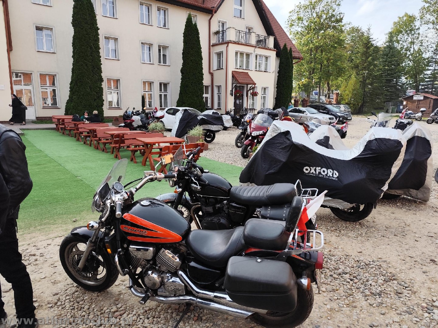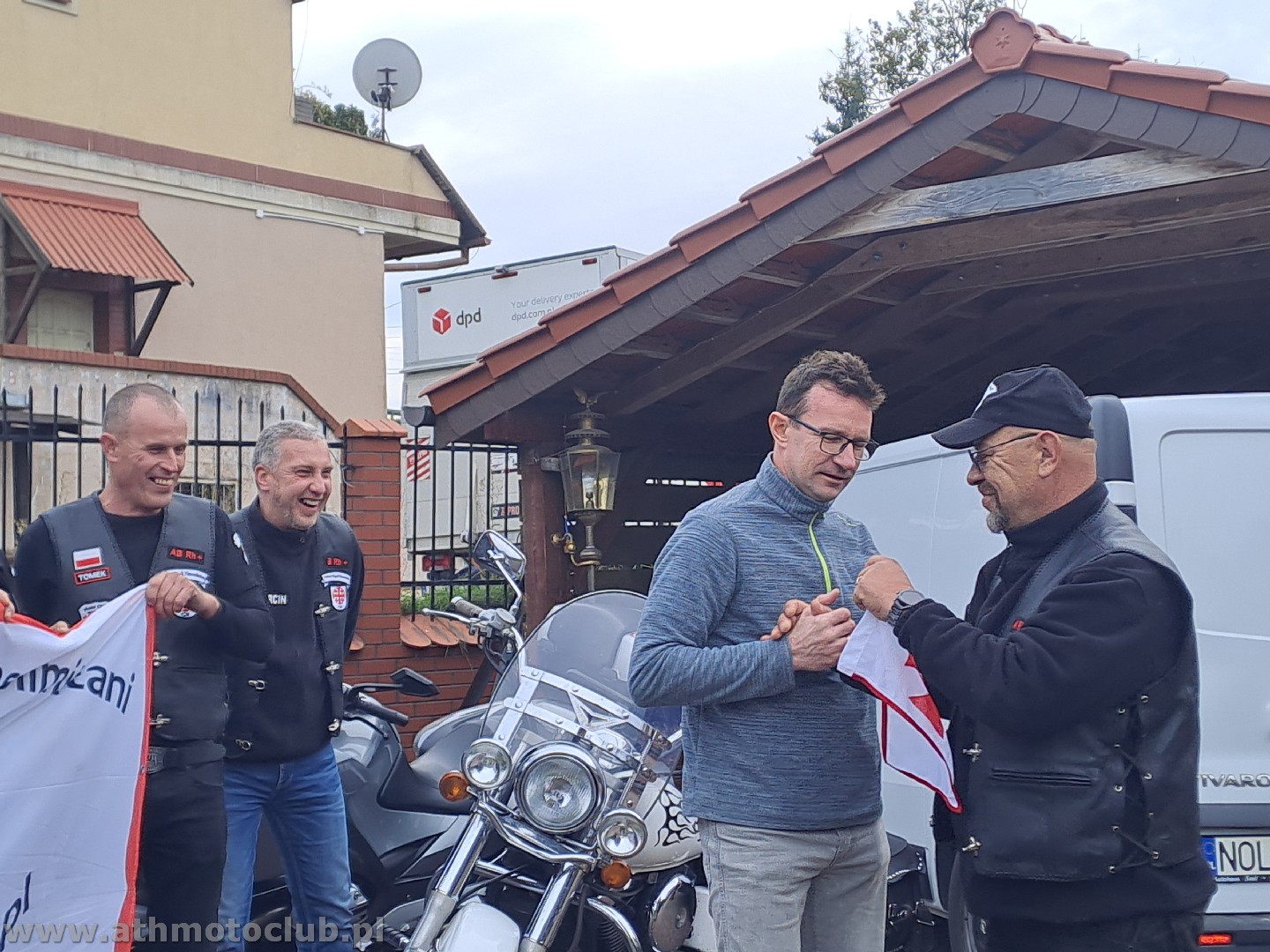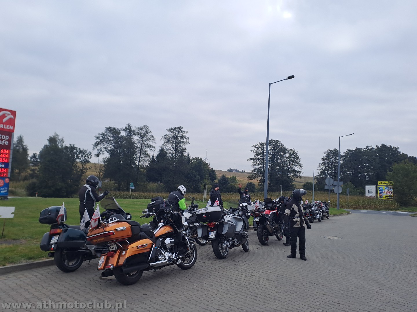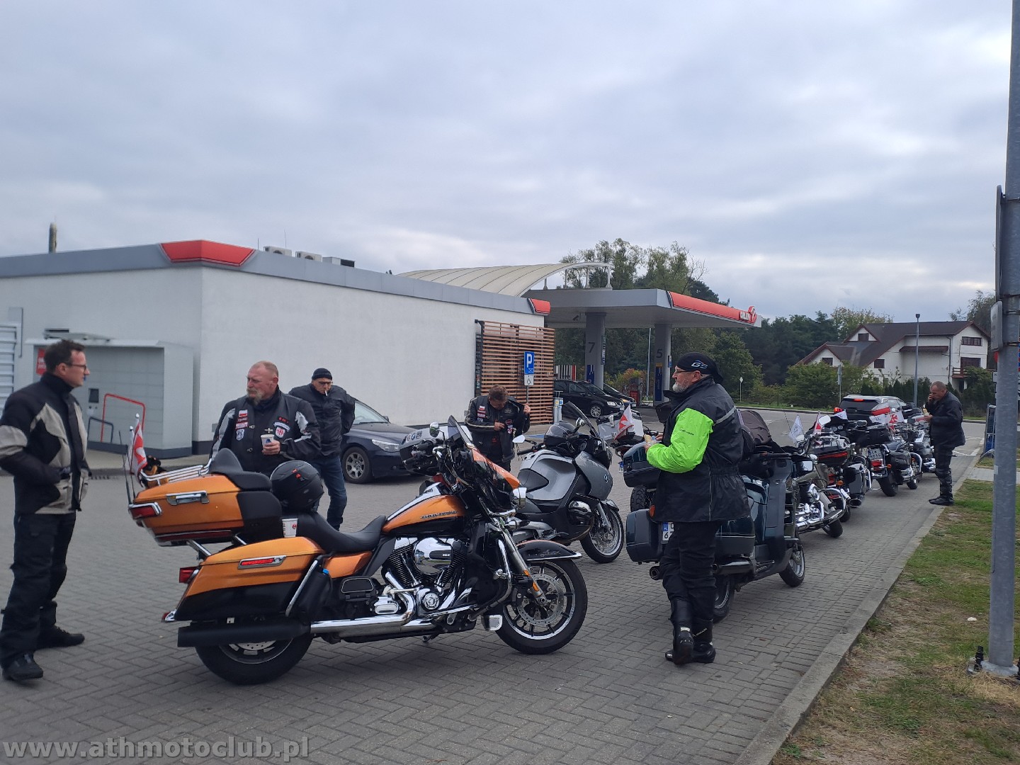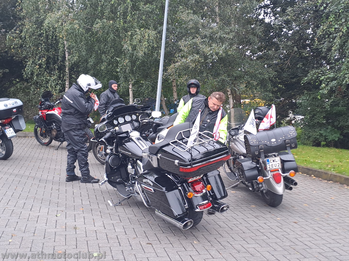 Pierwszy weekend października od wielu już lat kojarzy się motocyklistom z zakończeniem sezonu organizowanym przez Stowarzyszenie Międzynarodowy Motocyklowy RAJD KATYŃSKI. Mimo nie do końca sprzyjającej pogody w sobotę – 4 października ATH MOTOCLUB Włocławek stawił się w Gietrzwałdzie niemal w komplecie. Nasz wyjazd rozpoczęliśmy tradycyjnie przy naszej Siedzibie, skąd ruszyliśmy w drogę urokliwymi okolicami Kujaw, Pojezierza Brodnickiego by dotrzeć na Warmię. Ważnym punktem naszej corocznej wyprawy jest wspólny obiad w niemal domowej atmosferze, który ma miejsce w Gospodzie Mariasz – miejscu w iście warmińskim stylu z wyśmienitą polską kuchnią, gdzie z uśmiechem (jak zawsze) przywitała nas Pani Asia. Celem naszej wyprawy w tym dniu były „Noclegi przy Cukierni”, gdzie dotarliśmy w wyśmienitych humorach. Po bezpiecznym zaparkowaniu naszych stalowych rumaków oraz rozpakowaniu bagaży udaliśmy się na spacer po Sanktuarium Matki Bożej Gietrzwałdzkiej odwiedzając Bazylikę Narodzenia NMP oraz Źródełko – cudowne miejsce słynące wieloma łaskami, które w 1877 roku zostało pobłogosławione przez Matkę Bożą. Kolejnym punktem naszego pobytu w Gietrzwałdzie było ważne wydarzenie Klubowe – nasz Brat Sławomir Skierkiewicz otrzymał pierwszy atrybut potwierdzający jego przynależność do ATH MOTOCLUB Włocławek – flagę do umieszczenia na motocyklu. Ceremonii wręczenia przewodniczył Kapitan Sławomir Kurczaba, który odpowiadał za koordynację całej naszej wyprawy do Gietrzwałdu. Zwieńczeniem tego dnia była wspólna kolacja, której przygotowanie nadzorował Dariusz Ziółkowski – nasz niezawodny Brat o wielu talentach. Niedzielny poranek przywitał nas ciepłymi pączkami ofiarowanymi nam przez Właściciela miejsca, w którym nocowaliśmy. Głównym punktem niedzielnego przedpołudnia była jednak msza święta sprawowana na ołtarzu polowym znajdującym się przy wspomnianym wcześniej źródełku. Tradycją naszych wyjazdów stają się także „przygody dodatkowe” w drodze powrotnej… Tym razem psikusa sprawił nam jeden z motocykli, ale „konsylium ATH” pod przewodnictwem niezwodnego Brata Dariusza szybko usunęło awarię i mogliśmy ruszyć w dalszą drogę do domu. Nieco smutno, że kolejny sezon przechodzi do historii… Z drugiej strony cieszy nas to, że ostatni rok był pełen wspólnych udanych wyjazdów spędzonych w wyjątkowej, rodzinnej atmosferze. Kolejne dłuższe czasy z pewnością już na wiosnę, ale w tym roku jeszcze nie powiedzieliśmy ostatniego słowa... Poniżej kila fotek z nszego wyjazdu.
