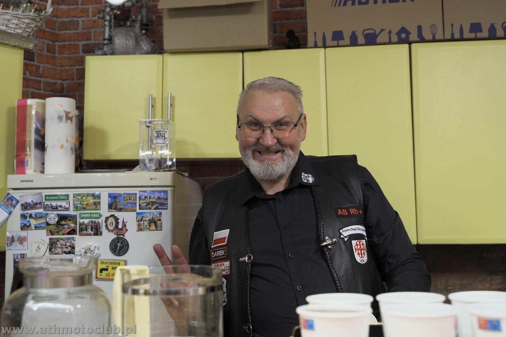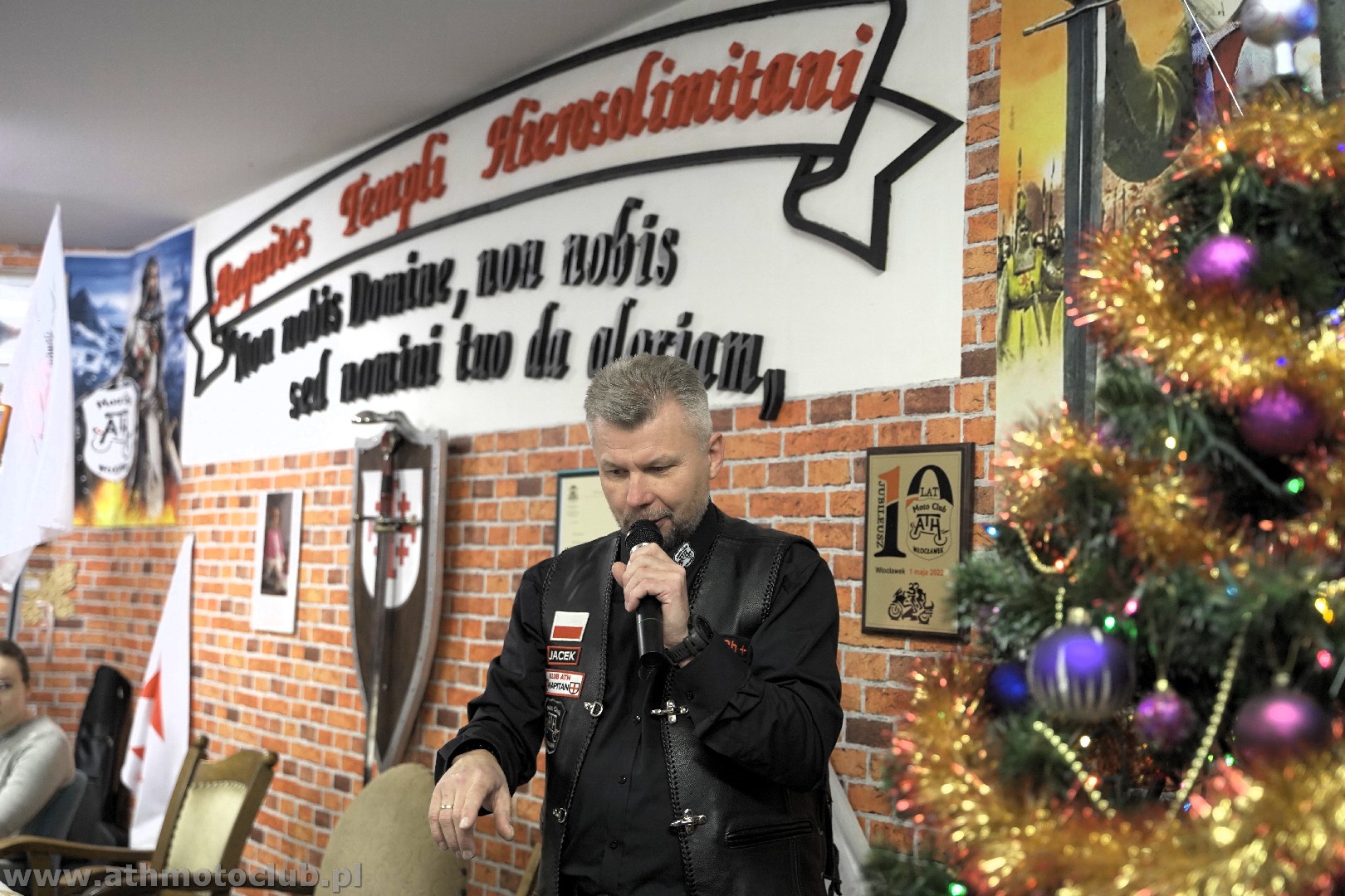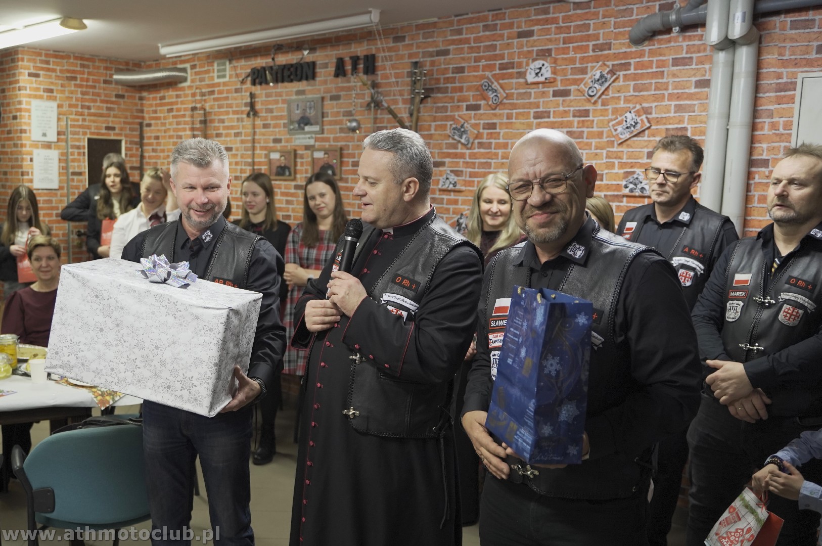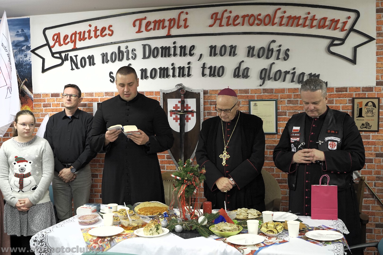 Wyjątkowym a jednocześnie tradycyjnym akcentem tegorocznej wigilii była wizyta honorowego Generała ATH – Jego Ekscelencji Księdza Biskupa Seniora Wiesława Alojzego Meringa, który od wielu lat darzy nas motocyklistów życzliwością i serdecznym słowem. Biskup Mering, na zaproszenie klubu, zaszczycił wigilię swoją obecnością, dzieląc się krótkim słowem duszpasterskim o znaczeniu wspólnoty, przyjaźni i pokoju i Boga w codziennym życiu każdego człowieka.