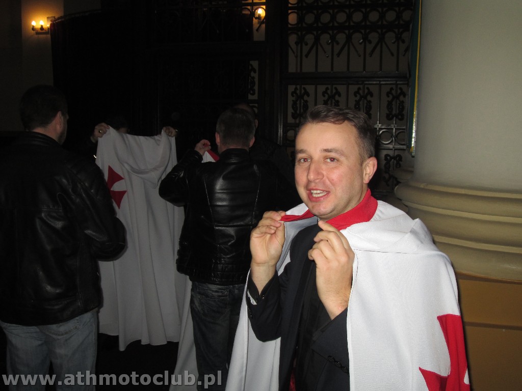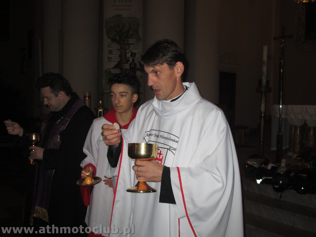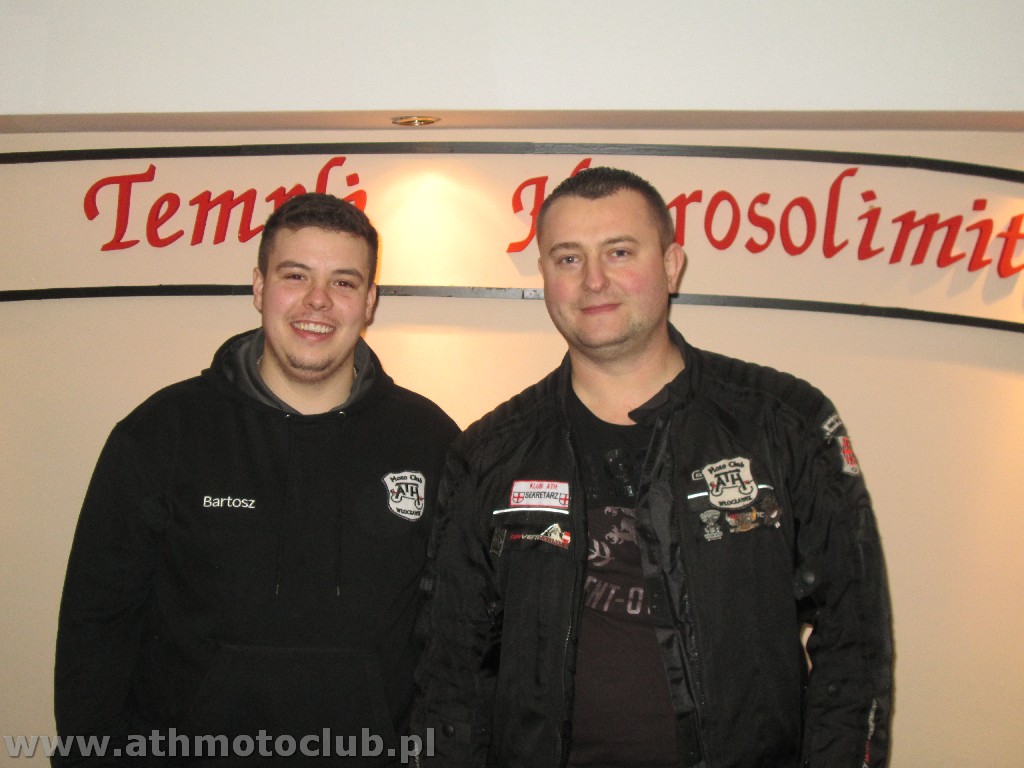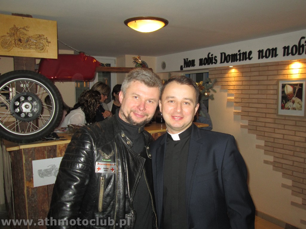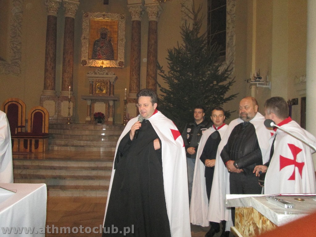 Zbliżający się czas Bożego Narodzenia to okazja do spotkań w gronie rodzinnym by wspólnie przeżywać radość z przyjścia na świat Dzieciątka Jezus. To również okazja do spotkania w gronie klubowej rodziny ATH. 20 grudnia był szczególnie wyjątkowy gdyż oprócz spotkania przy wigilijnym stole odbyła się ceremonia mianowanie kolejnych Braci i Sióstr na wyższe stopnie rycerskie. W niedzielne popołudnie o godzinie 16:45 w Kościele Parafialnym św. Stanisława odbyła się Msza Święta, po której nastąpiła uroczystość pasowania naszych Braci. Pełne barwy klubowe odebrali Rycerze ATH : Brat Piotrek , Brat Rafał, Brat Robert. Mianowani do tarczy ATH czyli na stopień Giermka zostali Bracia Mirek, Czarek, Sławek, Artur, Paweł. Zaszczytu noszenia Tarczy ATH dostąpiły również żony i narzeczone naszych Braci. Po uroczystości przejechaliśmy do naszej Komandorii gdzie rozpoczęliśmy Wigilię od przeczytania przez naszego Brata xRafała Ewangelii św. Jana przypominającej Narodziny naszego Pana Jezusa Chrystusa ! Następnie zgodnie z Polską tradycja podzieliliśmy się opłatkiem i składaliśmy sobie wzajemnie życzenia …. Podczas trwania tej uroczystej chwili jeden z Naszych Pretendentów Arek otrzymał z rąk Komandora pierwszy stopień flagę ATH !Wszystkim nowo mianowanym gratulujemy, jednocześnie zapraszając do obejrzenia relacji foto z minionych wydarzeń.
